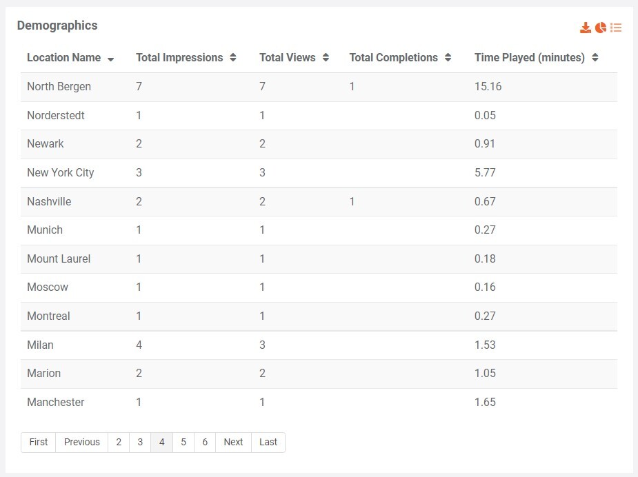 Note: Each of these analytics can be viewed graphically (as above) or in tabular form as well. Moreover, each of these analytics can be downloaded in CSV format, allowing users to export these analytics.