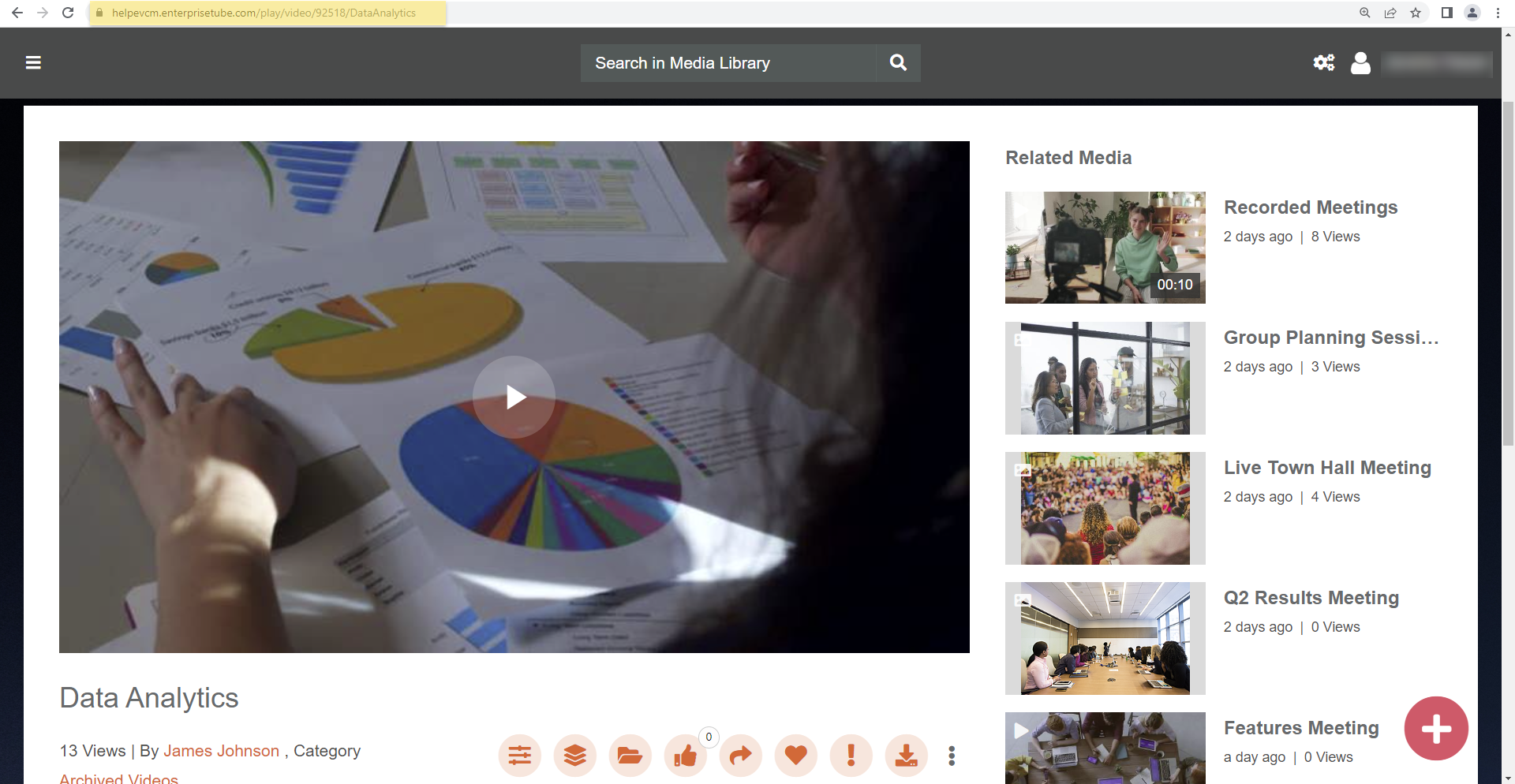 Note: If the Account/Portal is accessible by anonymous/external users, the URL will navigate the user to the desired media. However, in cases where the Account/Portal is limited to authenticated users, the media can only be accessed by registered VIDIZMO users. If the video is set as private in the access tab, then it cannot be viewed by someone with the copied link. Also, the copied URL captures all the selected filters which were in place on the media so that the same result is displayed when the URL is shared with other users.