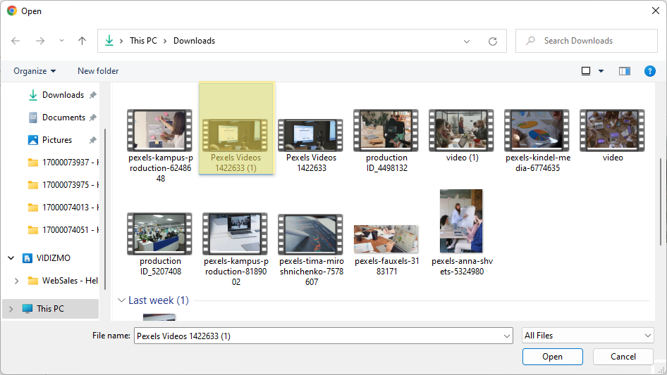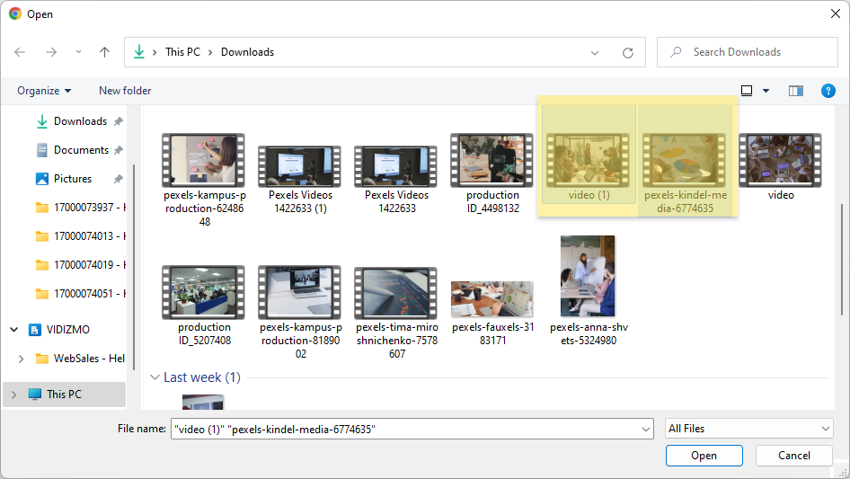 4. Select multiple files that you want to upload at once and click on the Open button.