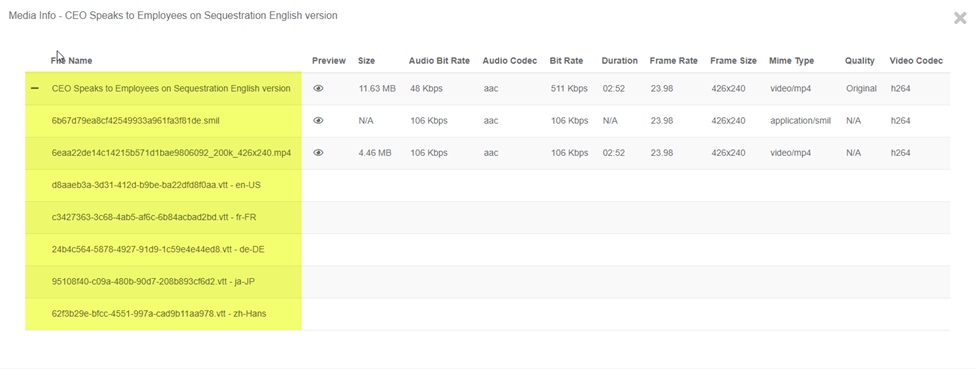 III. This dropdown allows you to view the details of the original file's renditions.