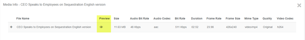 IV. Besides downloading, you also have the option to preview the media in a pop-up player. Click on the Eye icon highlighted below: