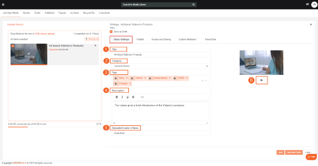 - Description: The description for the media file can also be added, which assists viewers in understanding the purpose of the content.