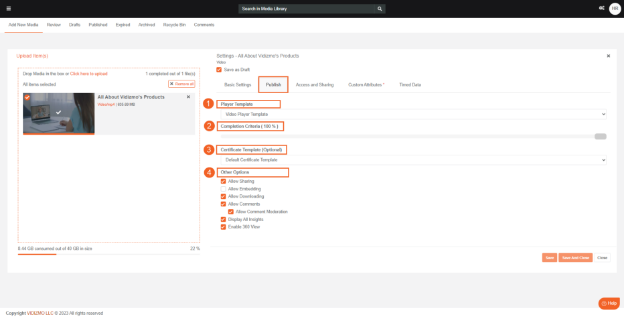 VIDIZMO's Media Settings, you can easily customize and manage your uploaded media files by defining a comprehensive list of parameters for each file. Users can customize their media settings according to their preferences.