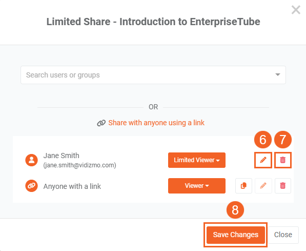 VIDIZMO's Limited Share functionality provides a powerful and flexible way to manage content access within and outside your Portal. By allowing you to assign specific viewing or editing rights to users or groups, as well as enabling external sharing via links, it enhances both content security and user collaboration.