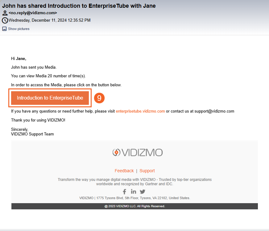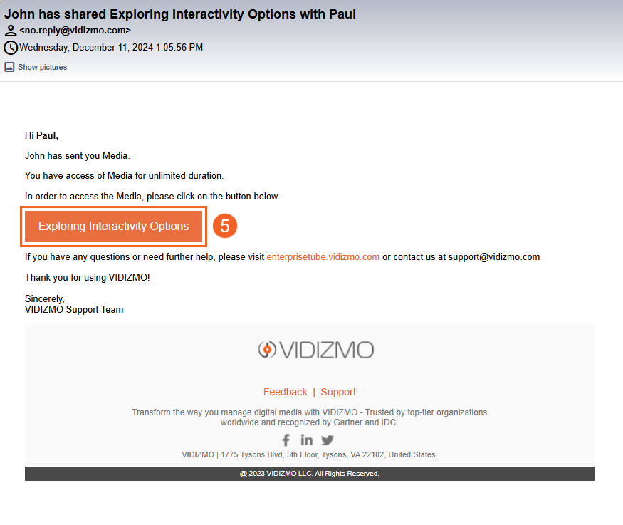 - Once the configurations are saved, the users assigned the limited share license are sent an email containing a link to the Media.