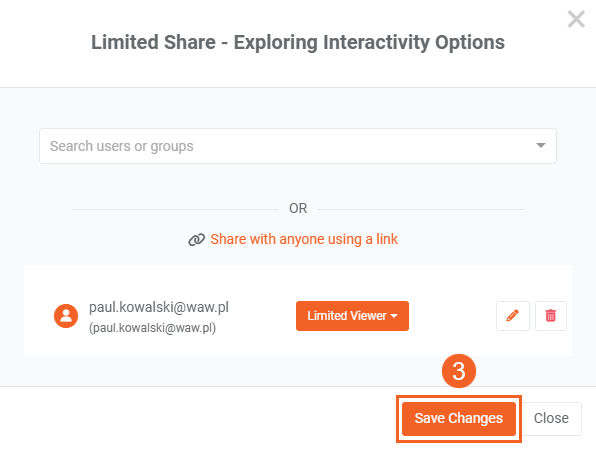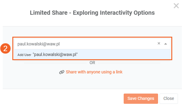 - Search for and add users or groups to assign them a limited share license. You add them by providing their name or email in the field.