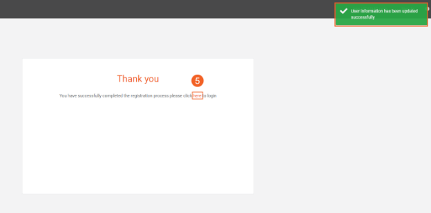 - The VIDIZMO Portal then informs you that your registration is complete. To proceed, click the highlighted text to go to the Portal's Login page.