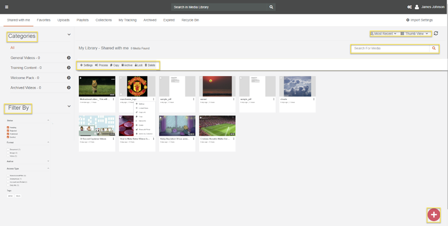 - Centralized Access to uploaded Media: As stated, media that is uploaded by the user is displayed in My Library, allowing a centralized management and searching of all media uploaded by the user.