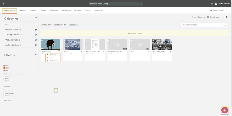 - This tab contains media that has been shared with user by the other portal user. This shared media can be of any format, it can also be a shared playlist or a collection as well.