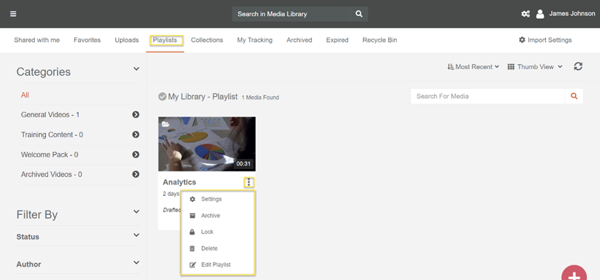 - User can make their playlist Private or Share it with portal. Also user can explore other media options such as Edit Playlist, Delete, Settings etc.