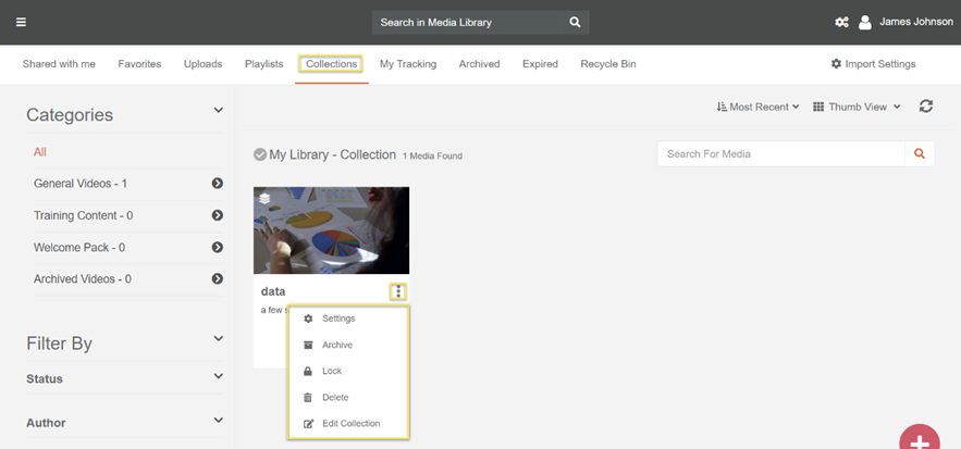 - User can make their collection Private or Share it with portal. Adding on user can explore other media options such as Edit Collection, Delete, Settings etc.