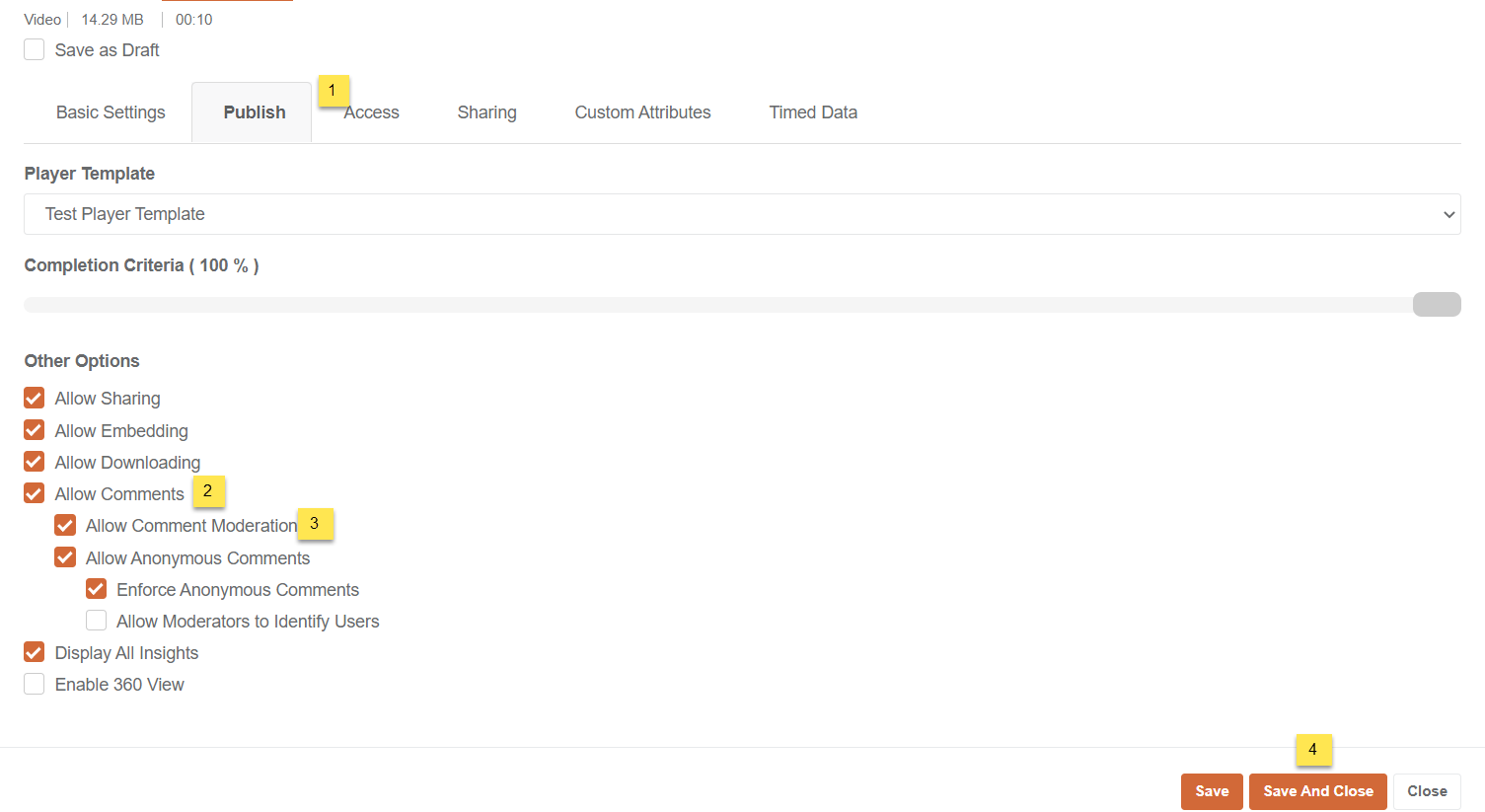 VIDIZMO allows the uploader (depending on their role in the portal) to define whether comments and comment moderation is allowed for that particular media file or not.