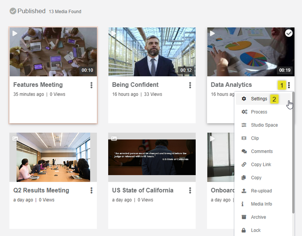 Moderators, Managers and Administrators can give exclusive access to specific viewers of the media files by assigning a password to it from Media Settings. You can do this from: