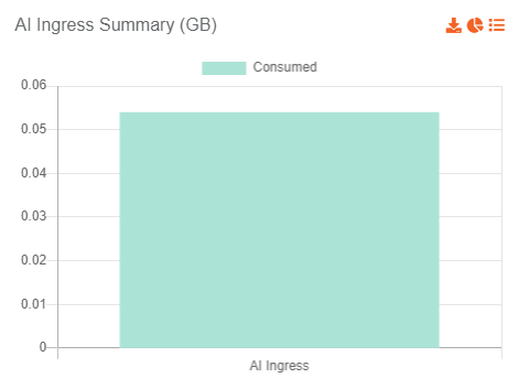 This resource reports the count of total size in GBs of content uploaded that goes through AI specific activities.