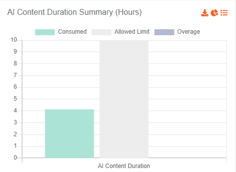 This resource depicts the duration in hours of the content that has been uploaded to perform AI specific activities.