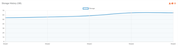 Here, the units of storage consumed over a course of month can be viewed for each week of this month specifically. It can be seen that the storage occupied in the Account increases as the month proceeds.