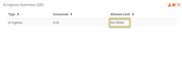 Additionally, the tabular view will clearly state that you are 'Not Billed' for this resource under the Allowed Limit column.