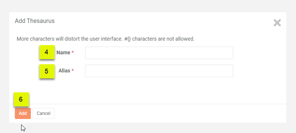 Click the Add Button to add a new configurable term to the Thesaurus list.