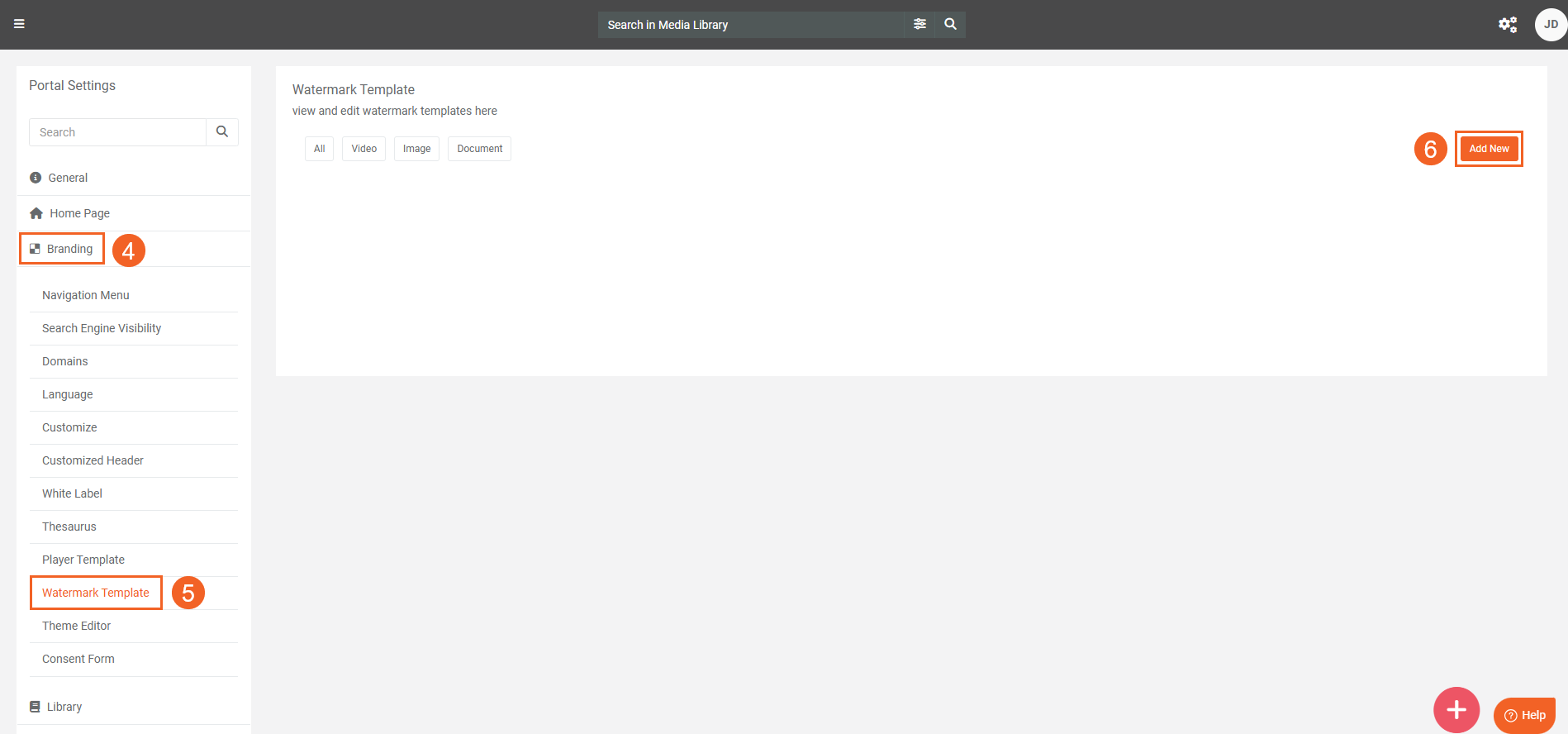 - Ensure you belong to a group that has Portal Management and Watermark features enabled. See Enable Features in the VIDIZMO Portal for more information.