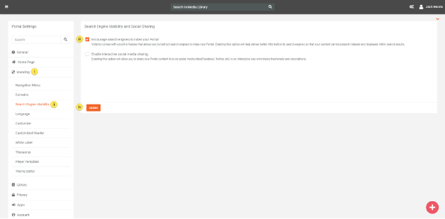 iii. in the Search Engine Visibility and Social Sharing screen, check the option Encourage search engines to index your portal.