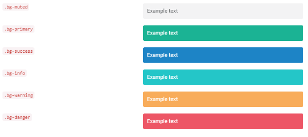 - Contextual Background: Following is the list of classes that correspond to various contextual background colors as shown: .bg-muted, .bg-primary, .bg-success, .bg-info, .bg-warning, .bg-danger