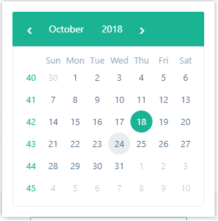 - Change week font color using .theme-green .bs-datepicker-body table td.week span