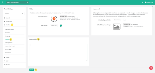 - Background color and background image do not apply on pages that can only be accessed by Manager/Administrator for managerial purposes e.g. Media Manager or Portal Settings. These two options only get applied on viewer-end pages.
