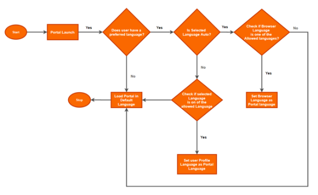 The flowcharts given below are depicting how Language Fallback works on Portal and content in various scenarios.