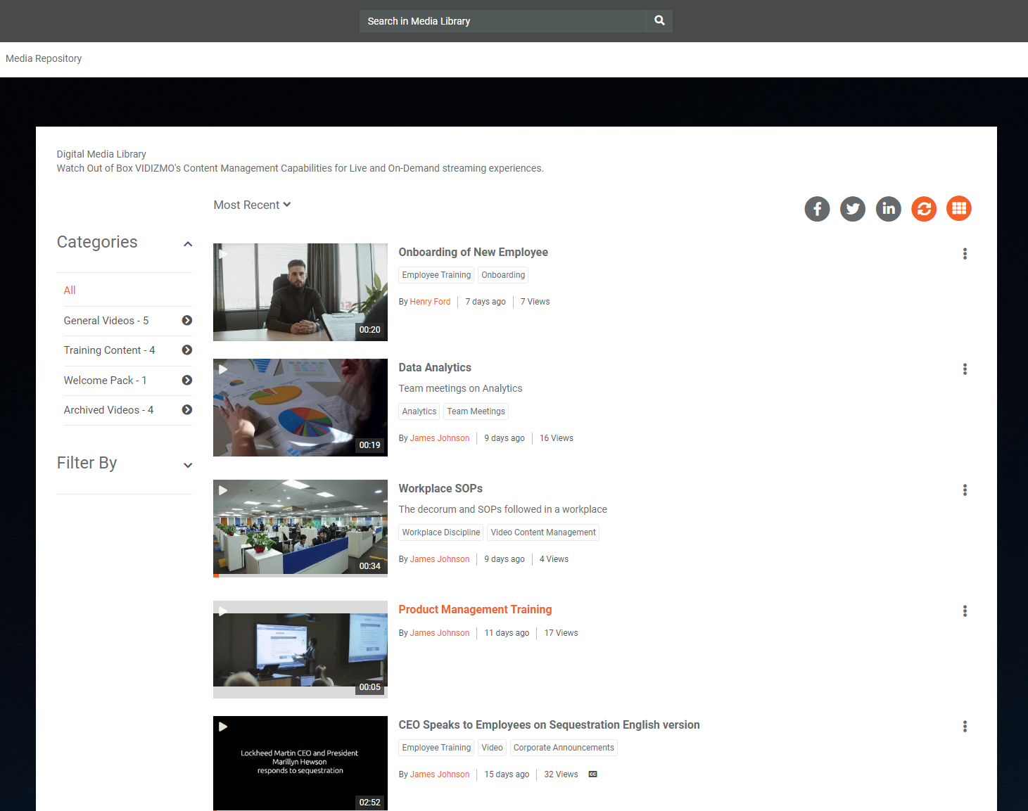 To give a custom feel to your Portal, VIDIZMO allows you to add the Portal title and description on your Media Library page. This helps to create a distinct identity, and the description can assist users in understanding the Portal's content.
