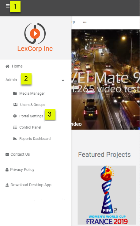 3. Select Portal Settings to open the Settings.