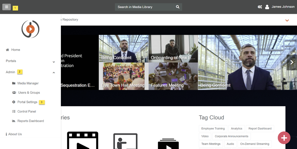 - Expand Admin's tab click on Portal's settings.
