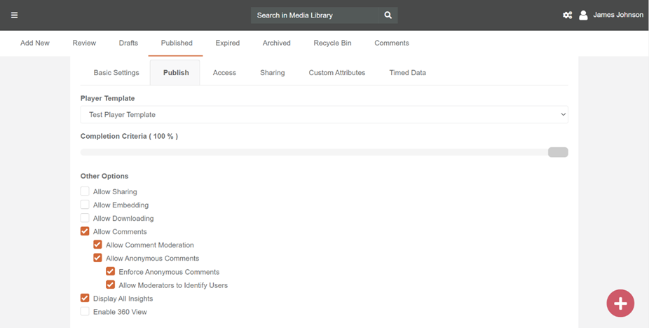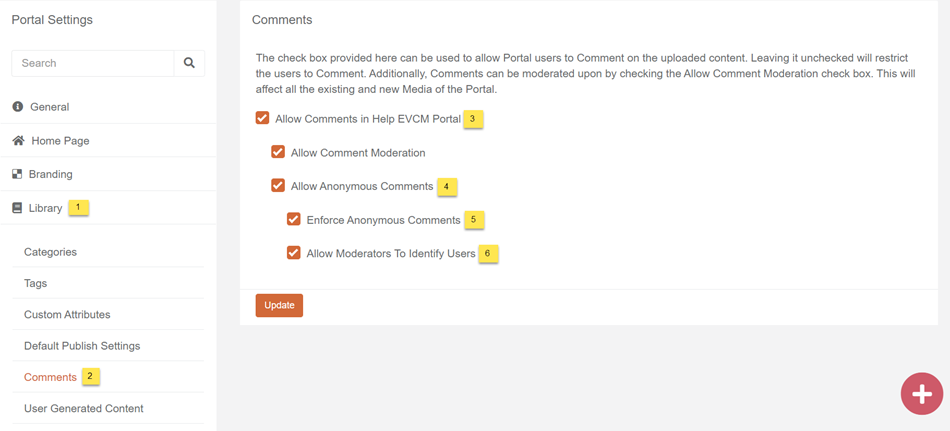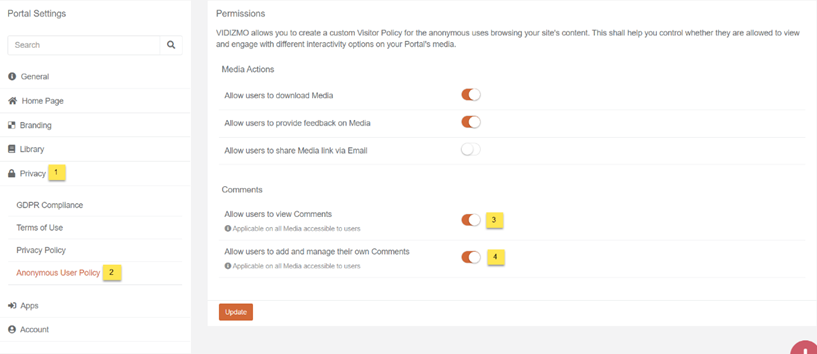 - Click on Allow Comments in VIDIZMO portal to allow users commenting . Choose Allow Comment Moderation if you want the normal or anonymous comments to be moderated.