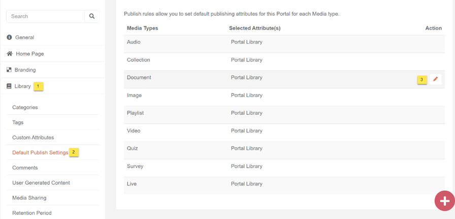 - From here you can edit the Default Publish Settings for any Media Type you want . These default settings will be reflecting on mashup settings by default . All enabled settings will be visible here and you can choose to enable or disable them as default for media.