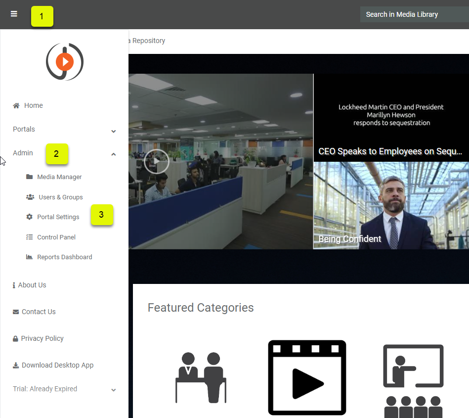 - Under the Admin section, select the Portal Settings tab to open the Portal Settings.