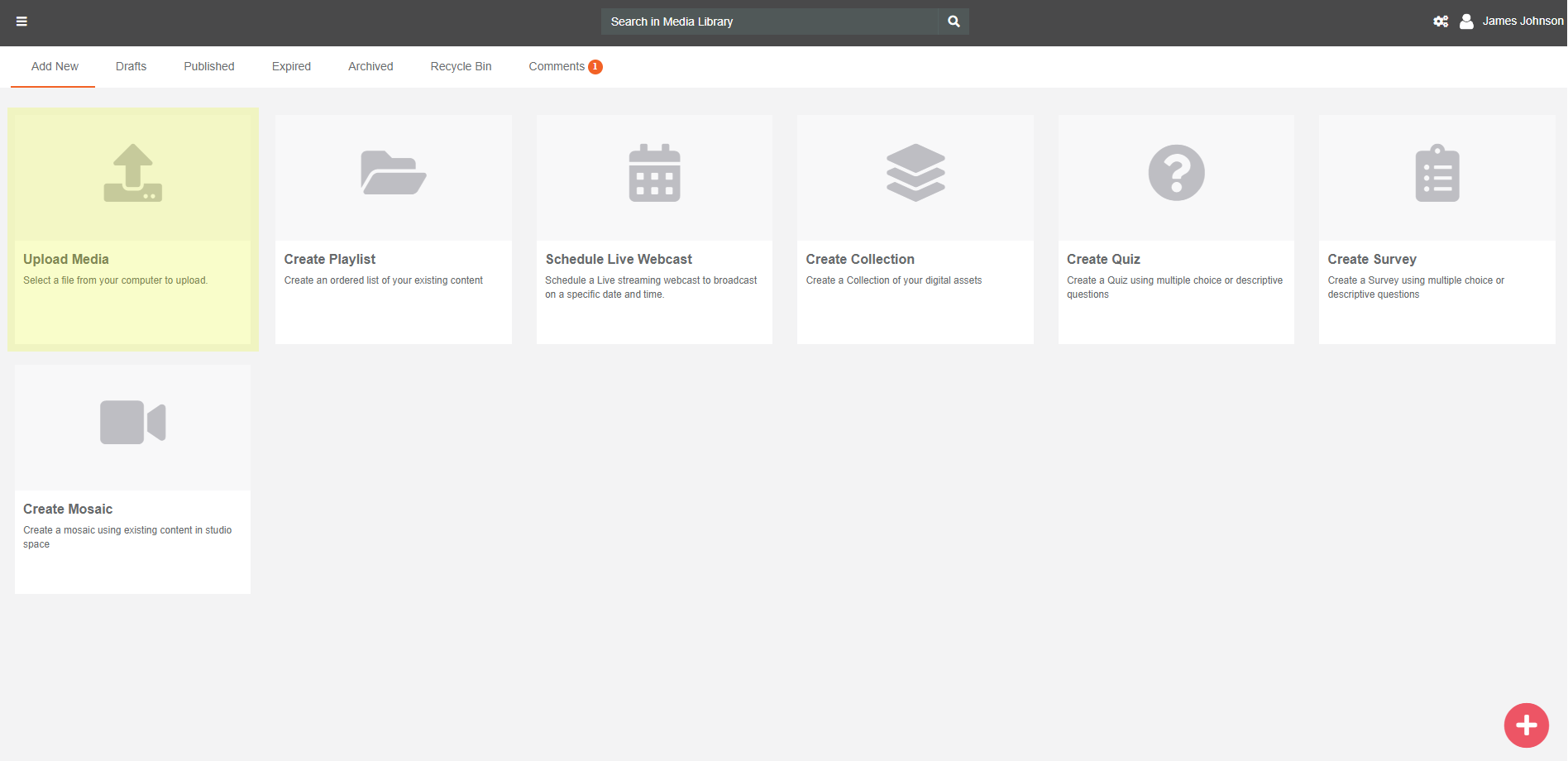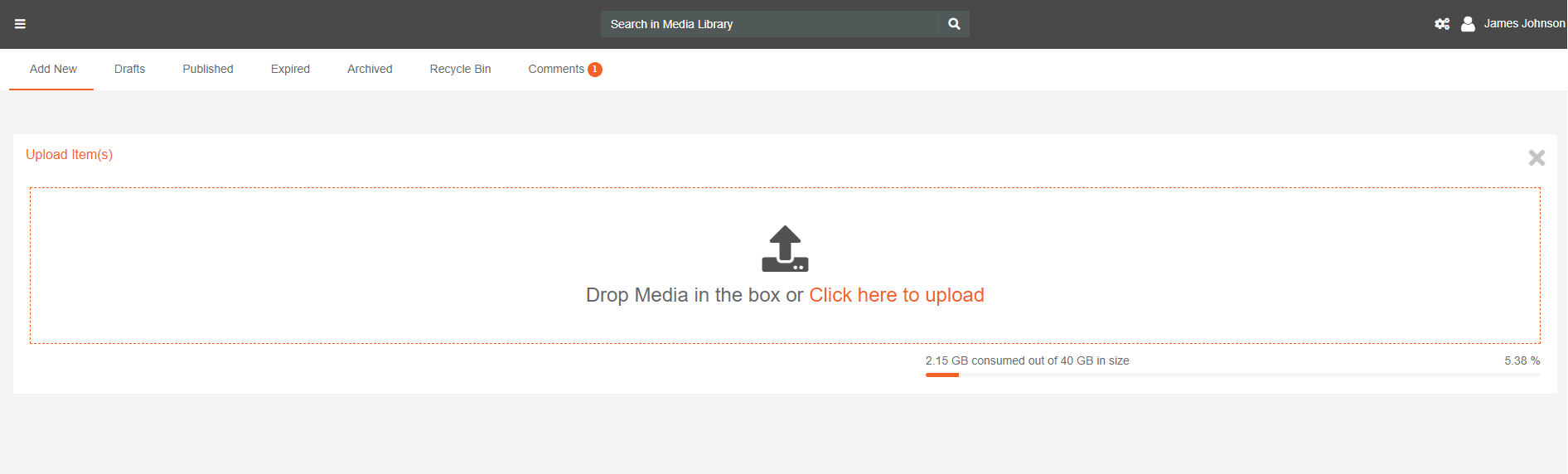 vi. On the Upload Media screen, follow the onscreen instructions to upload a media file.