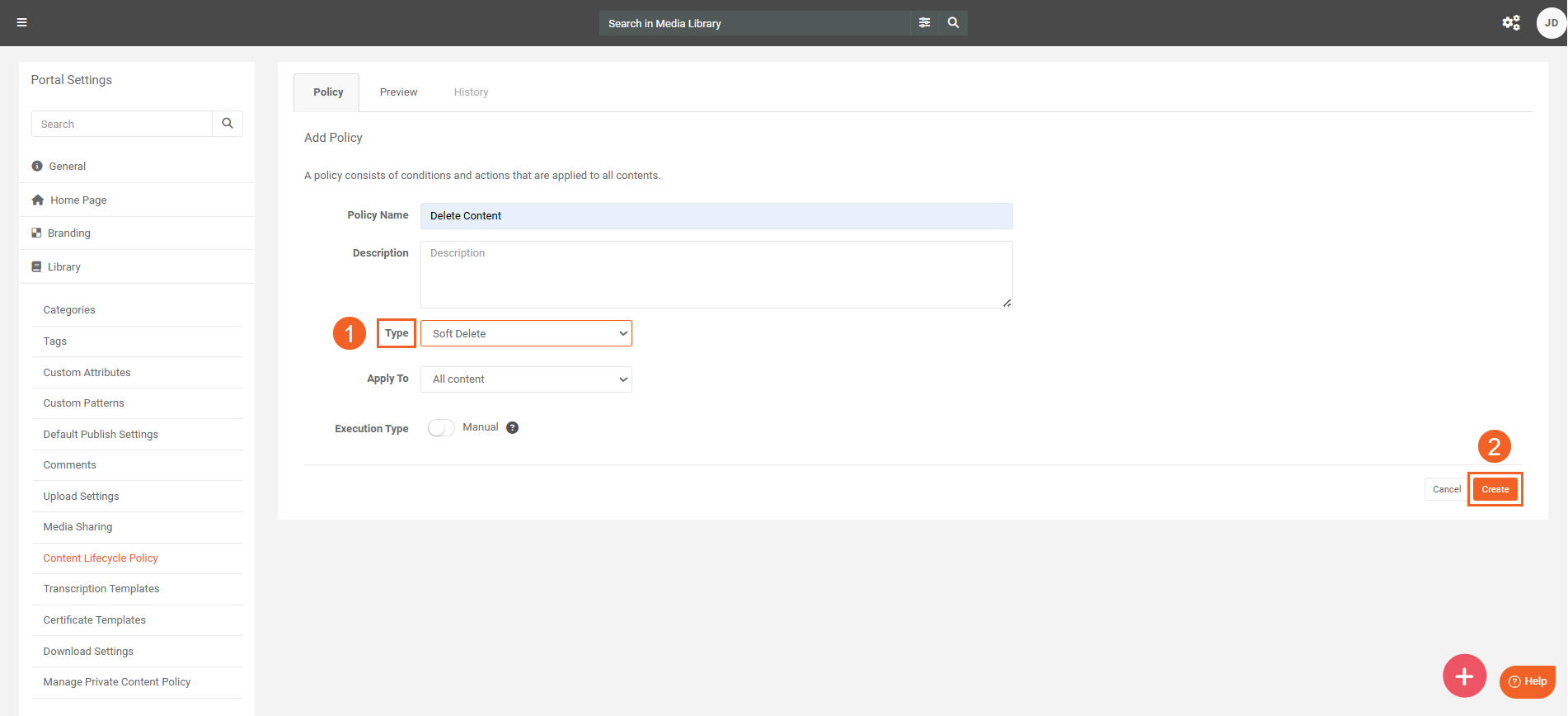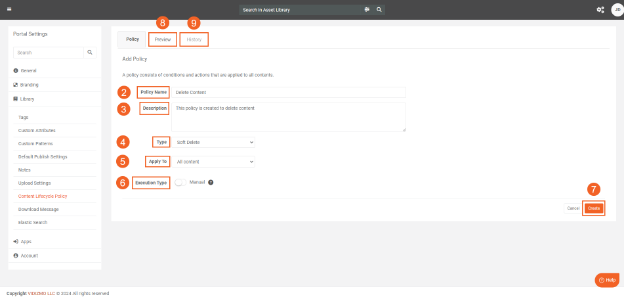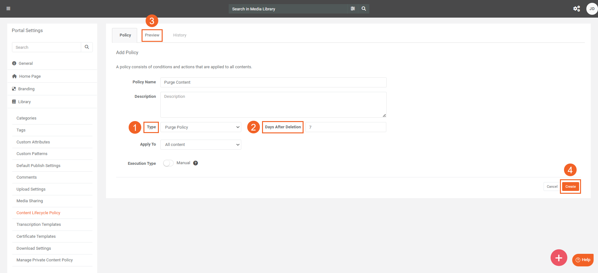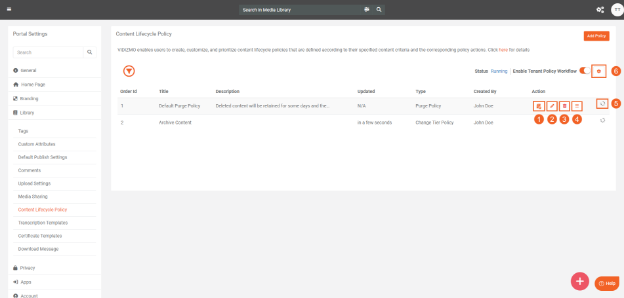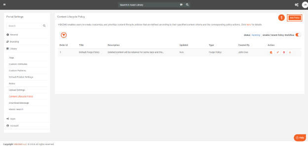 Note: VIDIZMO creates a Purge Policy by default whenever a Portal is made. You can edit it like any other content policy.