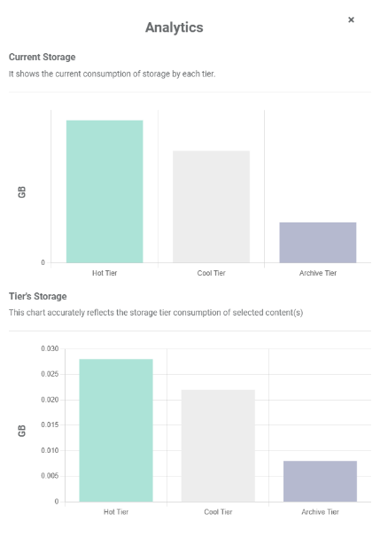 - The Analytics Chart button is available only for Change Tier policies. Click it to view information related to the storage consumption of each Azure access tier on your Portal.