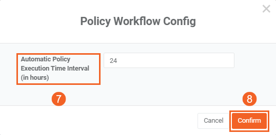 - On the Policy Workflow Config window, provide the time interval in hours.