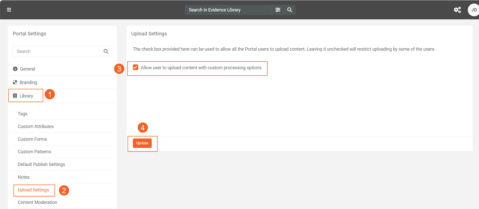 - Click on “Allow user to upload content with custom processing options” checkbox.