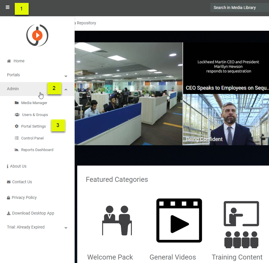 - Then click on the down arrow to expand the Admin section.