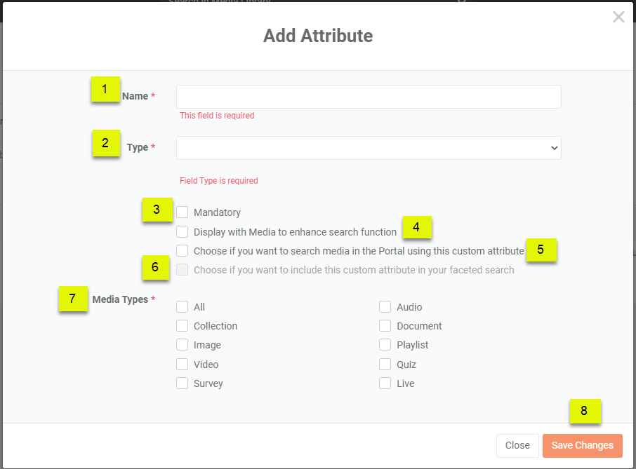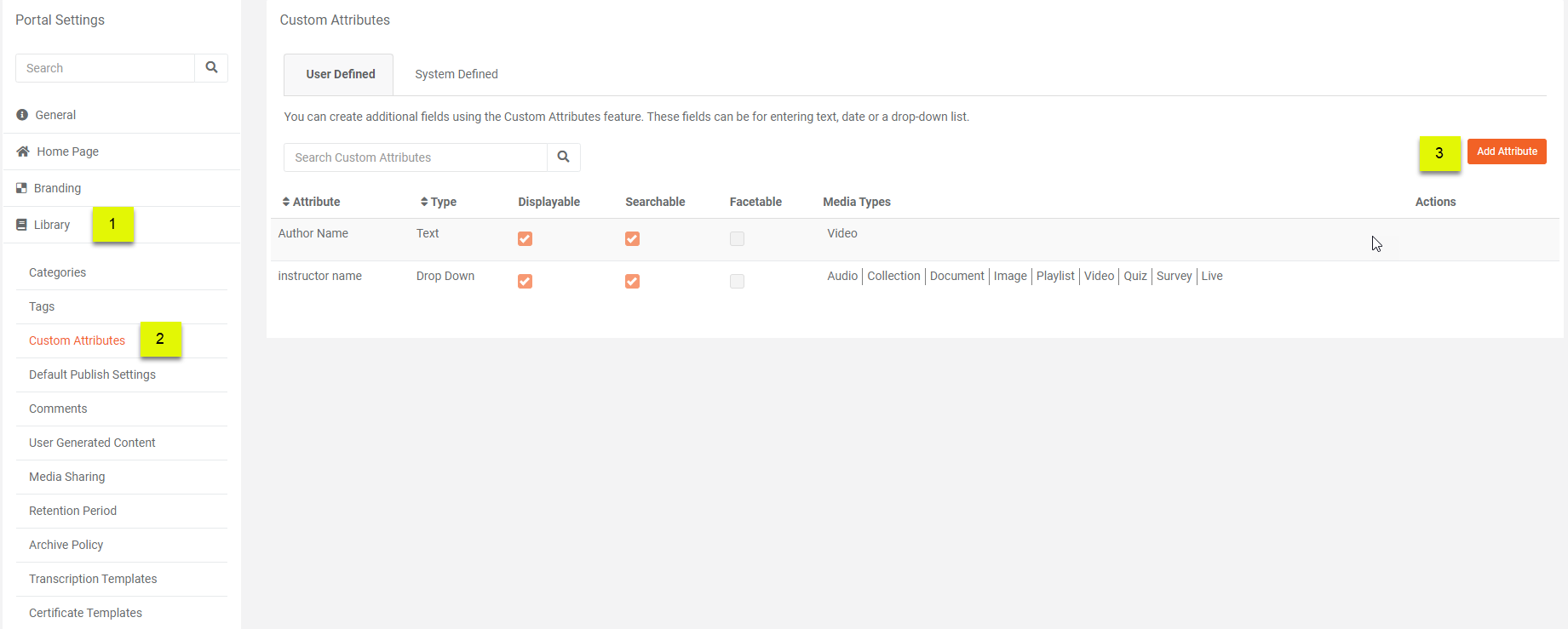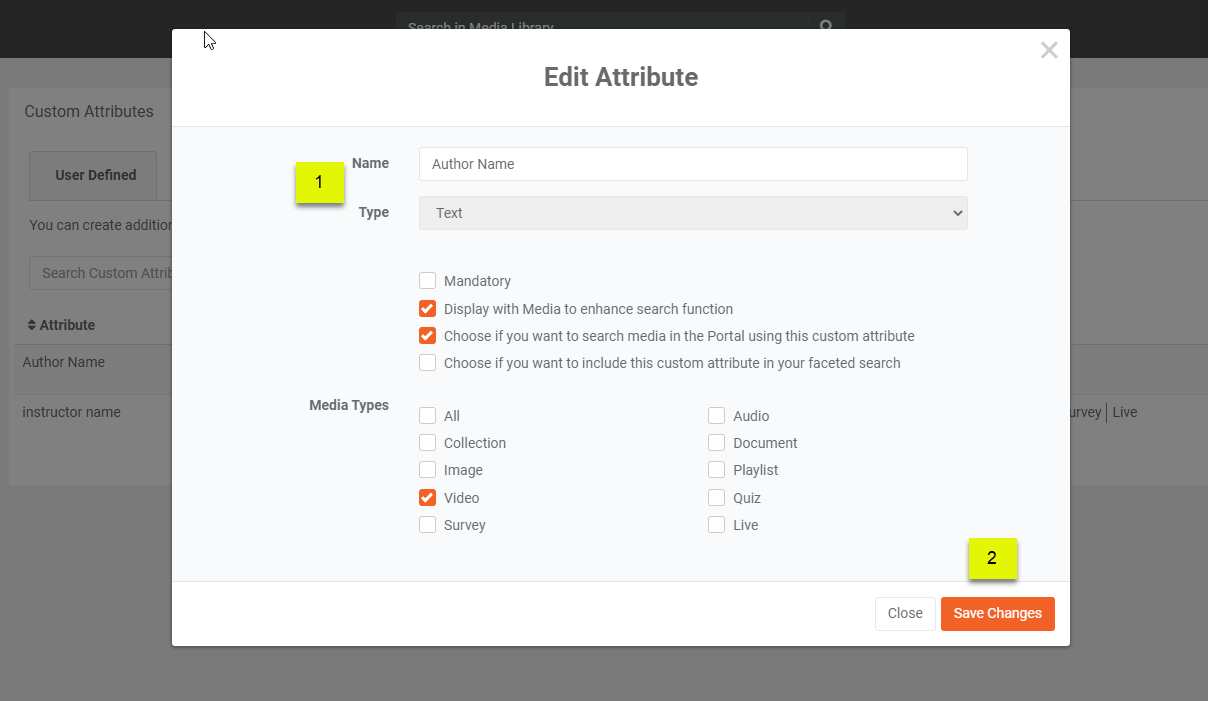 The “Choose if you want to search media in the Portal using this custom attribute” checkbox will allow you to search for your content using your Custom Attribute. When you search with Custom Attribute name, you'll be able to explore easily.