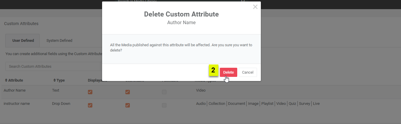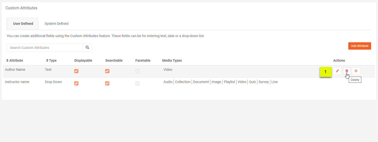 2. Click on the Delete to delete the custom attribute.