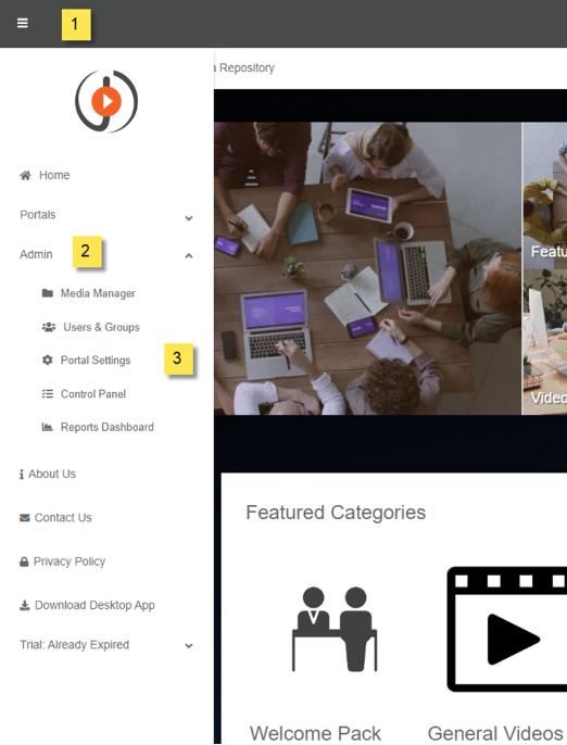 I. From the Portal's Homepage, log in using Administrator or Manager credentials.