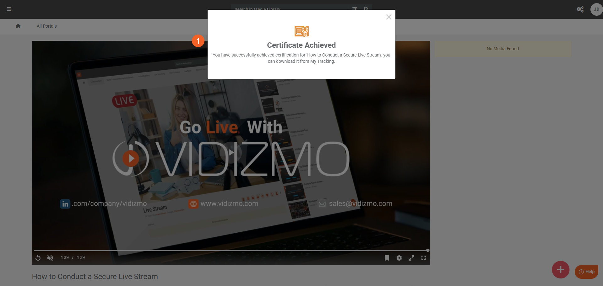 Once the completion certificate template has been created and assigned to Media, follow the steps below to see how to obtain and download the certificate.