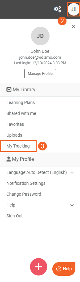 - Click My Tracking from the user profile pane.