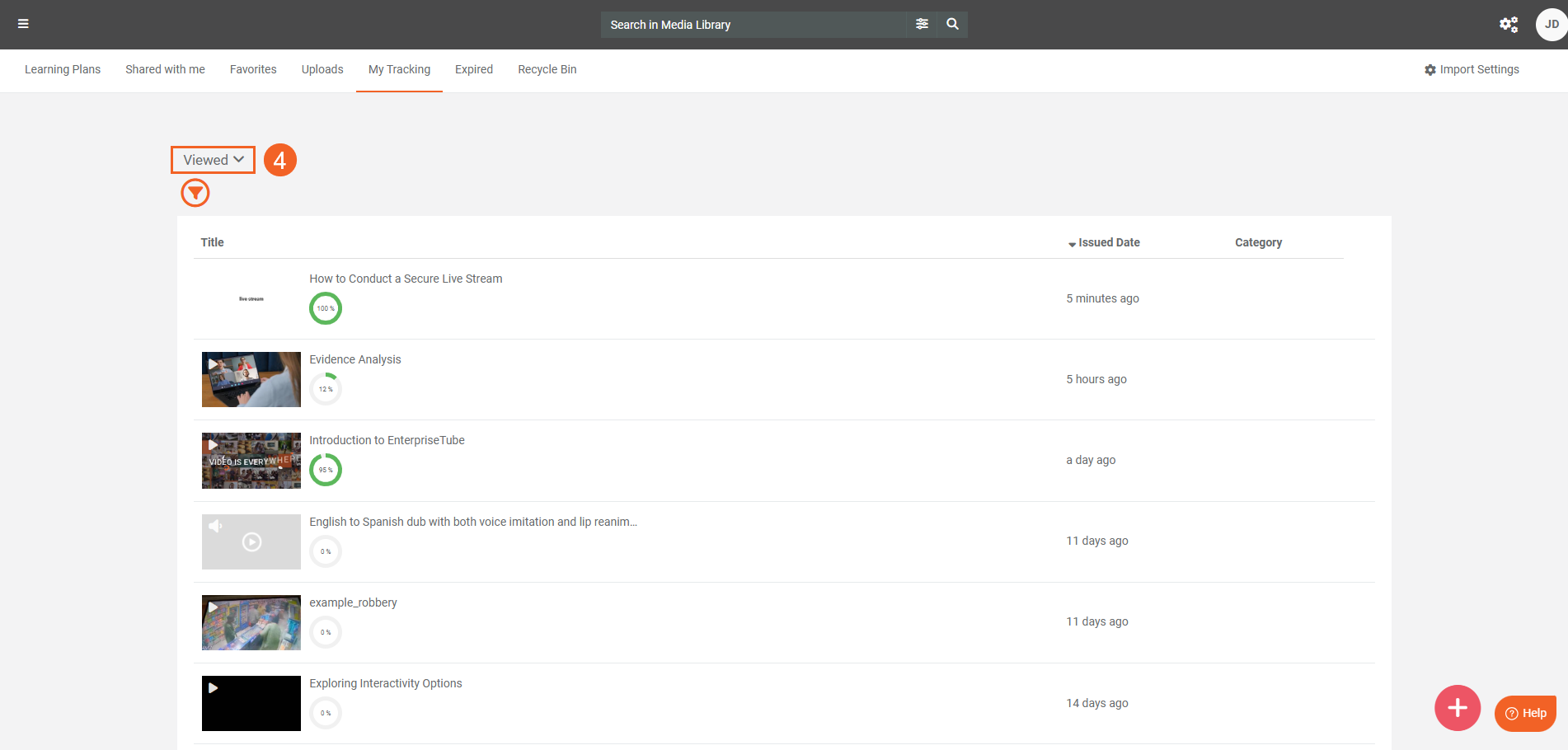 - On the My Tracking page, click Viewed.
