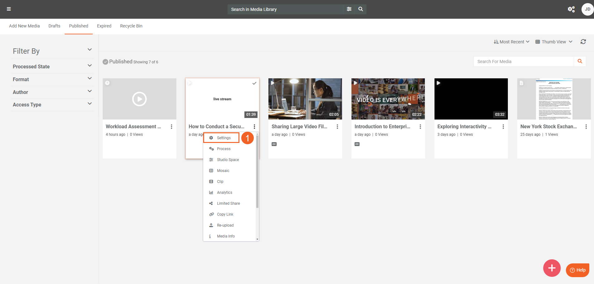 - Select Settings from the overflow menu of the Media for which you want to add the certificate template.