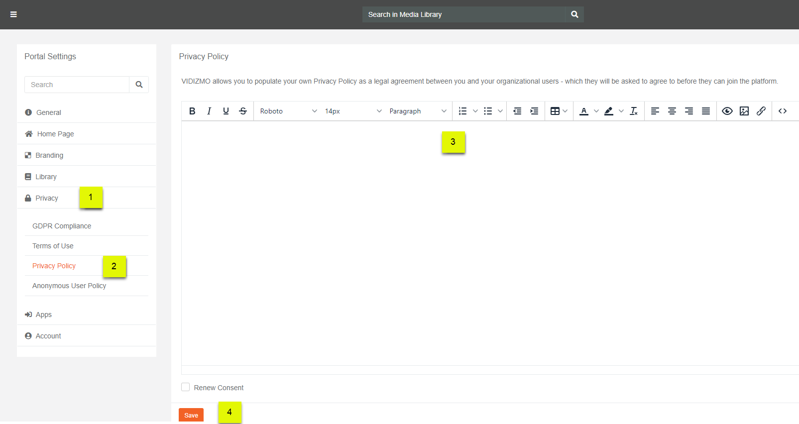 In VIDIZMO, users can define the privacy policy statement for the Portal.