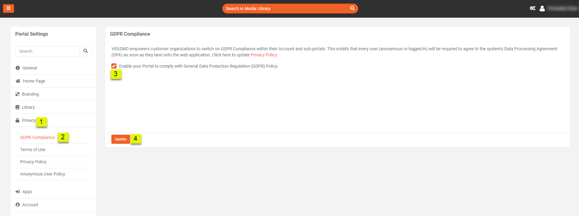 Enabling GDPR in VIDIZMO Portal