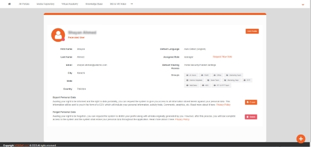 After you enable GDPR, user will have two options on their user profiles: